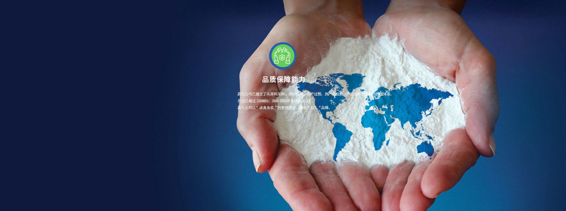 昌久公司已建立了從原料采購、原料檢測、生產(chǎn)過程,到產(chǎn)品檢測、產(chǎn)品出庫的完整的管理體系,并且已通過IS09001:2000國際質(zhì)量體系認證。昌久公司以"求真務(wù)實"的管理理念,鑄造"昌久"品牌。