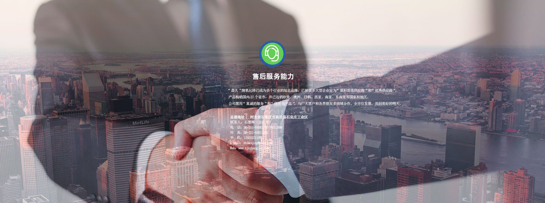 "昌久"牌氧化鋅已成為多個行業(yè)的知名品牌,已被很多大型企業(yè)定為"原料首選供應(yīng)商"和"優(yōu)秀供應(yīng)商"。產(chǎn)品暢銷國內(nèi)27個省市,并已遠銷歐美、澳洲、日韓、西亞、南亞、東南亞等國家和地區(qū)